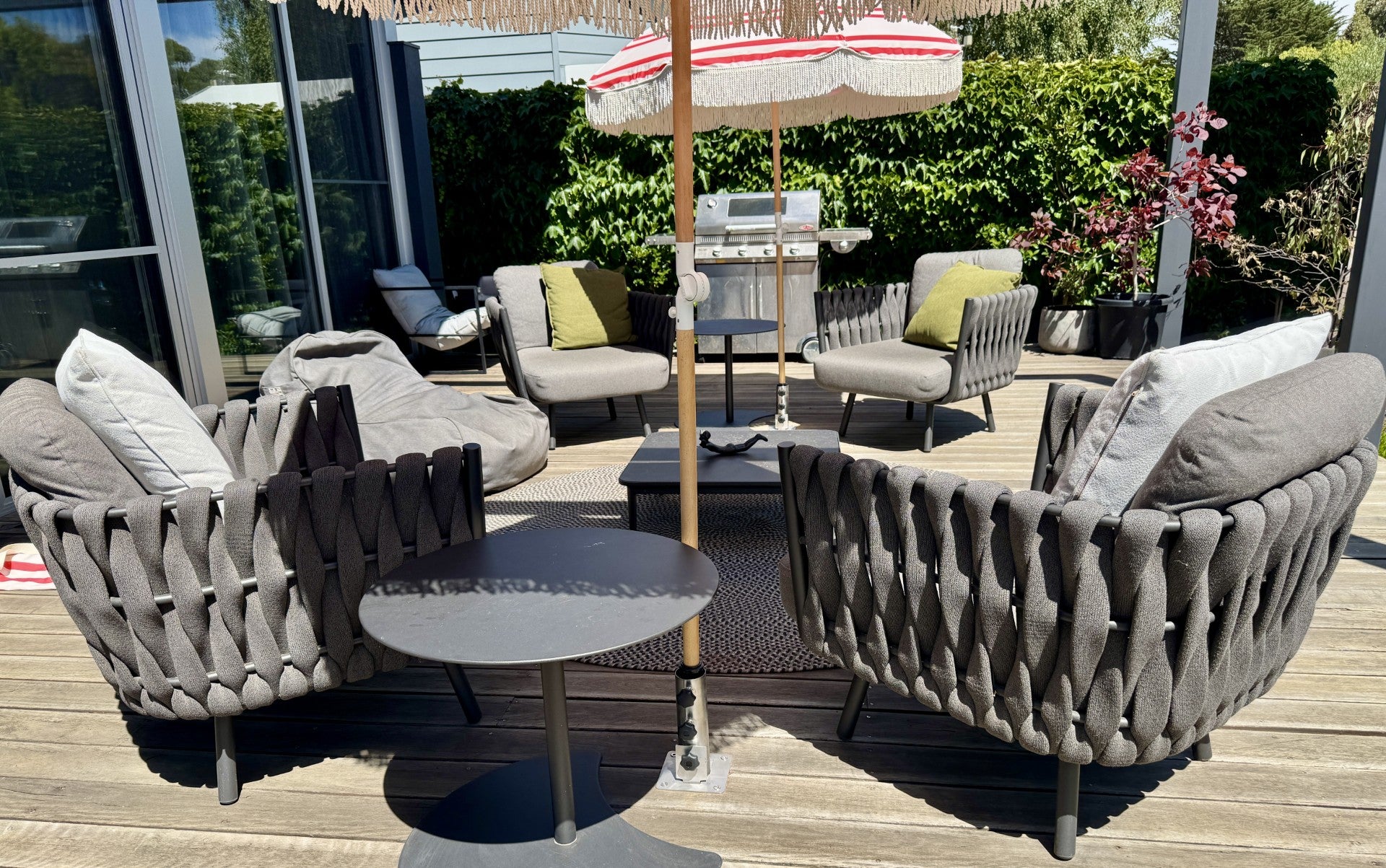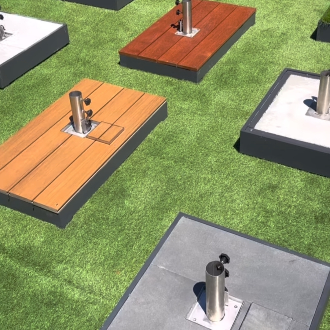 Exceedingly more elegant than weights and bases that gather mould, rust and trip hazards to your deck.